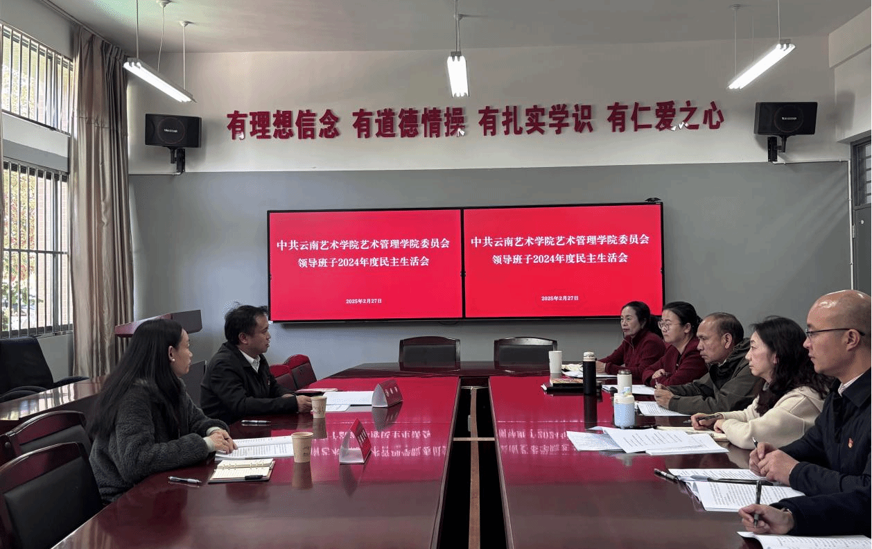 2025年2月27日下午,威廉希尔WilliamHill艺术管理公司党委领导班子2024年度民主生活会在艺管公司108会议室召开,公司党委委员、副董事长蒋锋同志,对外合作交流处陈雯婷同志到会督导,艺术管理公司党委班子成员参加了此次会议,非中共党员处级领导干部列席会议,会议由艺术管理公司党委书记骆圆主持。