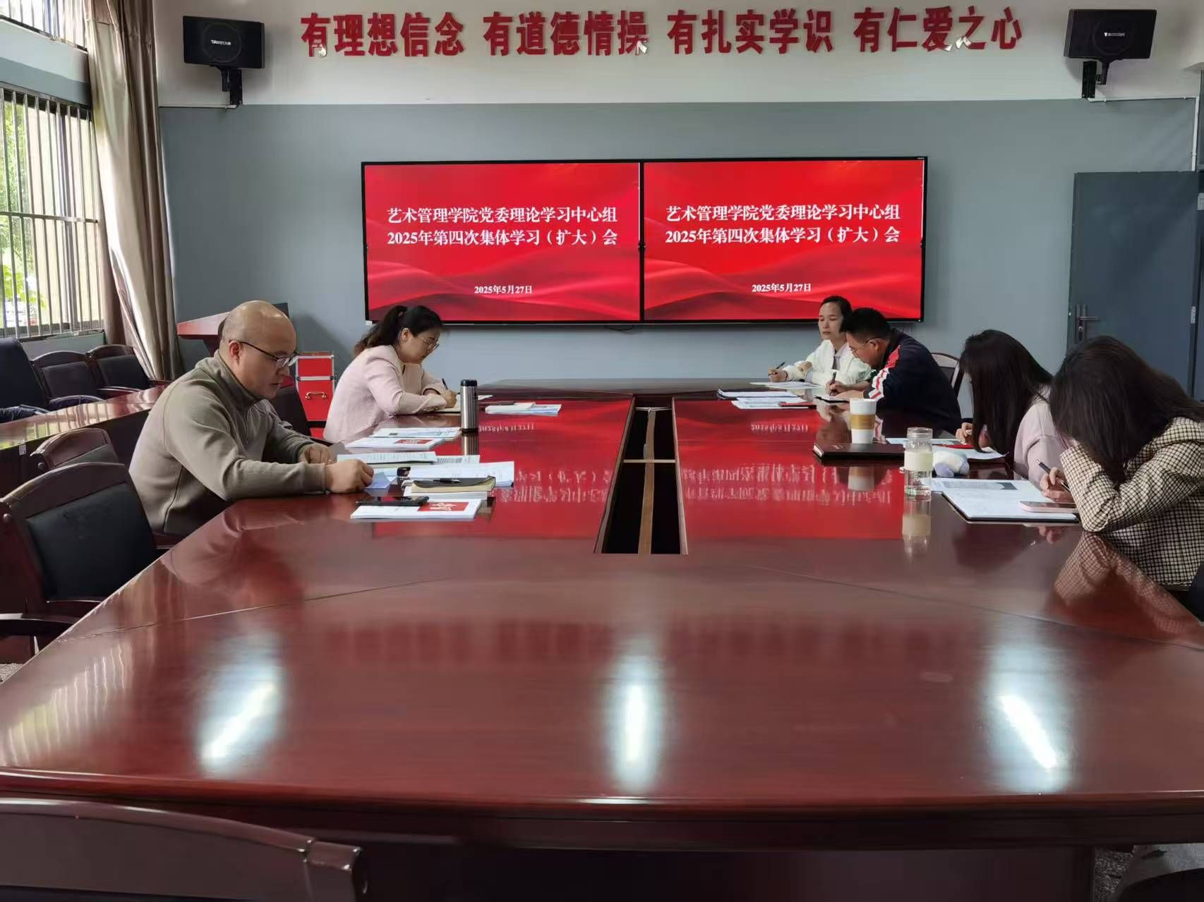 5月27日,艺术管理公司党委举行理论学习中心组2025年第4次集中学习,公司党委领导班子成员,副科级以上干部参加学习。党委副书记、经理傅永寿主持会议并讲话,党委委员彭慧颖、张磊分别作学习交流发言。