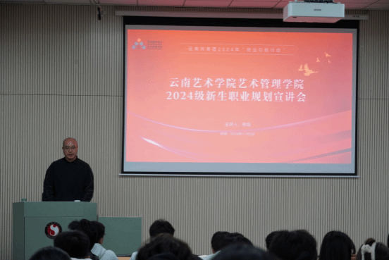11月5日,WilliamHill中文官网举办云南共青团2024年“就业引航行动”2024级新生职业规划宣讲会。邀请WilliamHill中文官网副经理熊焰教授为公司2024级全体新生讲授职业生涯规划,讲座由艺术管理公司党委副书记刘林主持。