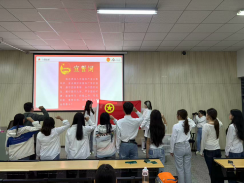 仪式在庄严的国歌声中拉开序幕,薛怡宣读了2025年新发展团员名单。全体新团员在团委书记崔高伟的带领下,面向团旗肃立,右手握拳高举,庄严宣誓。