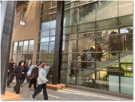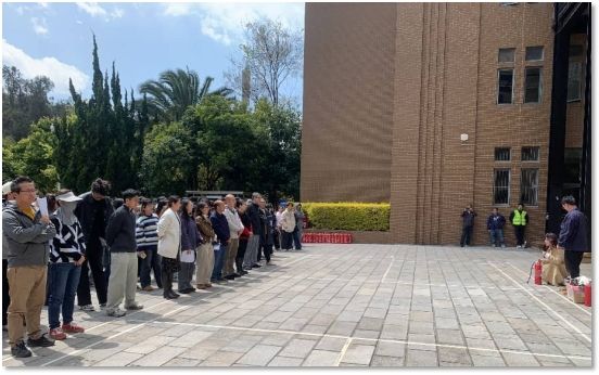 13时30分,随着演练总指挥一声令下,消防警铃响起,演练正式拉开帷幕。模拟火情设定在教学楼,消防演习烟雾弹释放出滚滚浓烟。各楼层引导老师迅速就位,沉着冷静地组织员工用湿毛巾捂住口鼻、弯腰低姿,按照预定疏散路线快速、有序地向安全区域撤离。整个疏散过程紧张有序,全体师生在规定时间内安全到达集结地点,达到了预期效果。