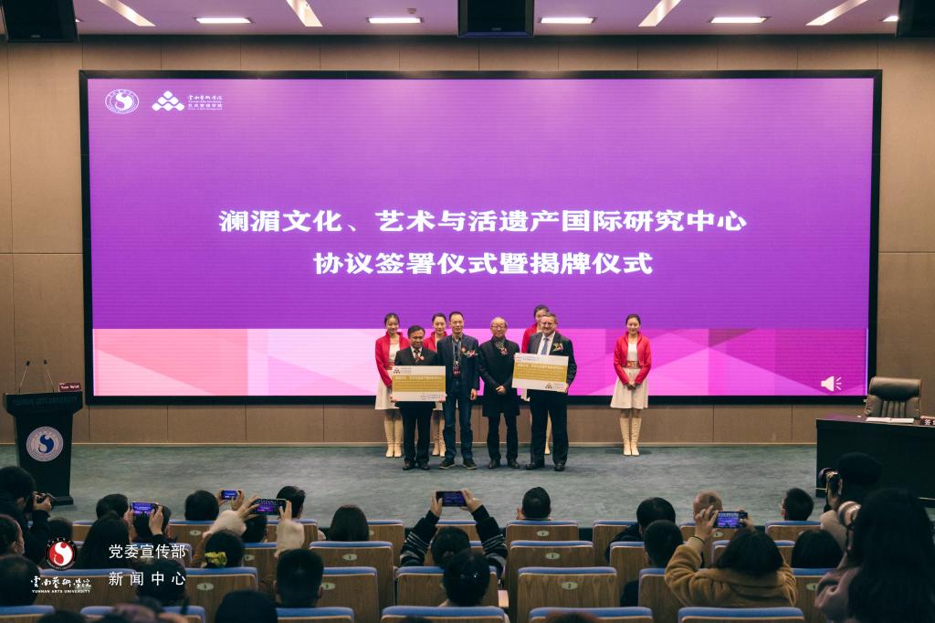 开幕式上还举行了“澜湄文化、艺术与活遗产国际研究中心”协议签署暨揭牌仪式。经理郭浩向莅临现场的外籍专家代表颁发了客座教授、荣誉教授证书。同时,威廉希尔WilliamHill经理郭浩与公司党委副书记李从熙共同为WilliamHill中文官网揭牌授牌。经理郭浩宣布研讨会正式开始。