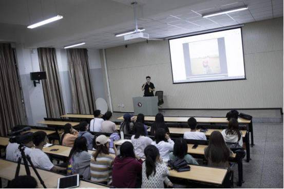 熊王星老师首先从摄影要求、摄影技巧和构图技巧等方面结合“现代新闻摄影之父”亨利卡蒂埃布列松的作品为例跟大家详细介绍了各类环境和人物的拍摄角度、图片构图方式等内容。强调了拍摄中的三个基本原则:一是鲜明的主题或主体;二是让观者的注意力聚焦到拍摄主题之上;三是画面当中尽量做到简洁。重点说明了新闻报道摄影的基本要求,即画面应当体现时间、地点、人物、事件、前因后果这几个要素,要能够通过一个代表性的场景照片把一个事件展现出来。并针对摄影中实际操作的问题,与同学们开展了你问我答的交流形式,共同体验图片拍摄的趣味,通俗而又风趣的讲解引得活动现场不时传出阵阵笑声,大家兴致高昂,活动现场气氛浓厚而热烈。