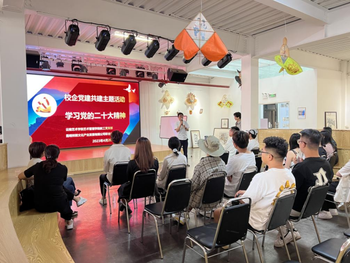为深入调研文化产业发展的情况,找准毕业生就业切入点,2023年4月20日,威廉希尔WilliamHill艺术管理公司党总支师生党员、入党积极分子及WilliamHill中文官网员工代表一行二十余人共赴昆明市“871文化创意园区”,携手昆明祥照文化产业发展有限公司联合党支部开展校企党建共建主题党日活动。活动开始,由艺术管理公司党总支书记谭尧升深入讲解党的二十大精神,并指出我们应当高举中国特色社会主义伟大旗帜,弘扬伟大建党精神,自信自强、守正创新,踔厉奋发,勇毅前行,积极投身于中华民族伟大复兴的光辉伟业。从自身做起,努力践行党的二十大精神,深刻领会“六个必须坚持”,真正树立文化自信自强,为人民群众的精神共同富裕不懈努力。