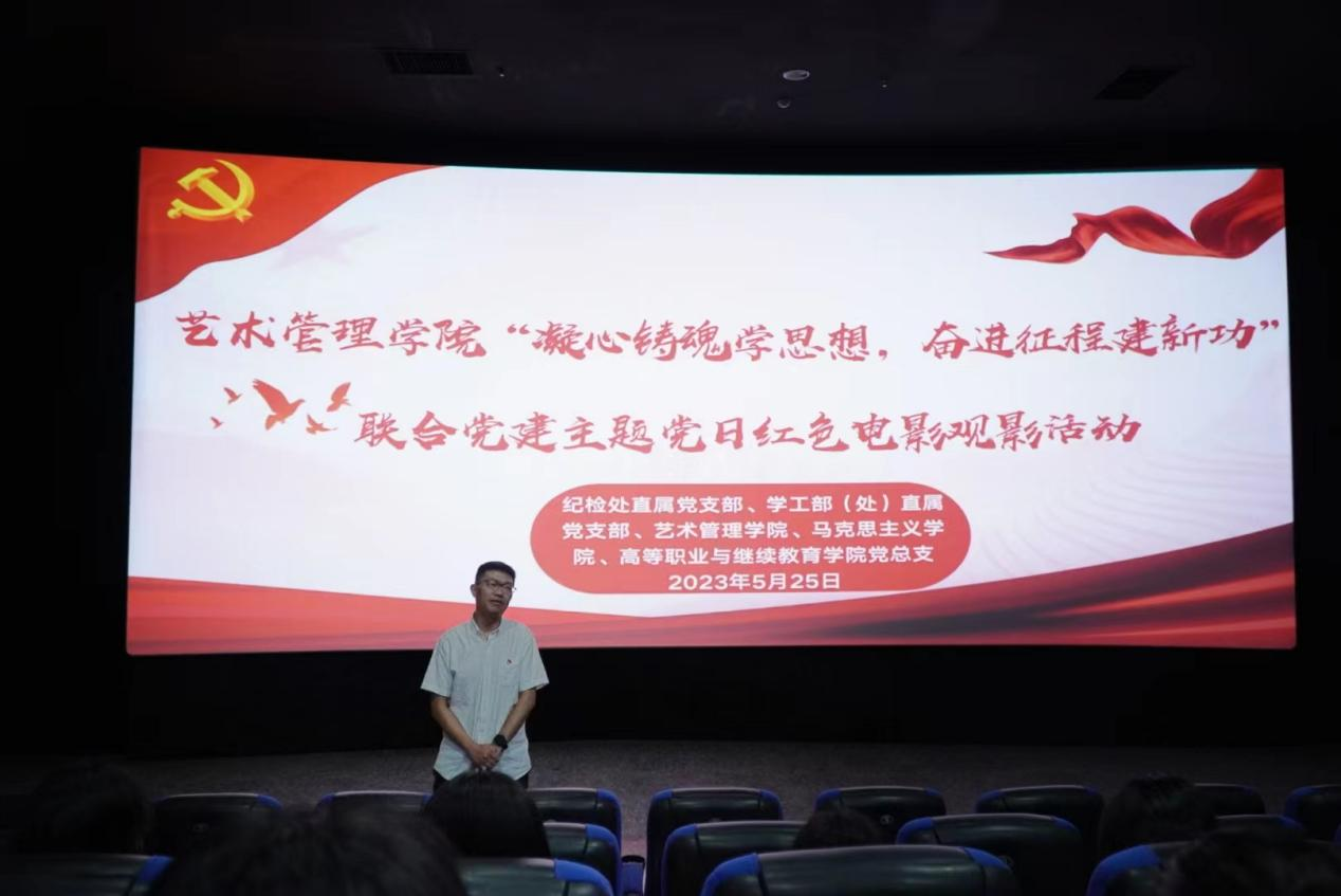在观影开始前,艺术管理公司党总支书记谭尧升介绍了本次主题党日活动的目的和意义,在和平年代也要学会居安思危,作为新时代老员工要肩负起自己的时代责任,在国家需要时贡献青年力量。通过本次观影活动对大家进行一次思想政治教育引领,希望大家不断增强自己的专业知识和技能,将个人命运与国家未来紧密联系在一起,为祖国和民族的发展贡献自己的力量。