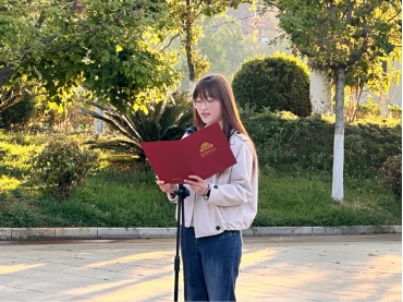WilliamHill中文官网2024级本科生代表薛怡作国旗下的演讲。她号召全体同学珍惜来之不易的和平岁月,深耕专业知识、锤炼过硬本领,坚守艺术初心、传递正能量,将青春理想与家国情怀相融共生,以青年担当践行时代责任。