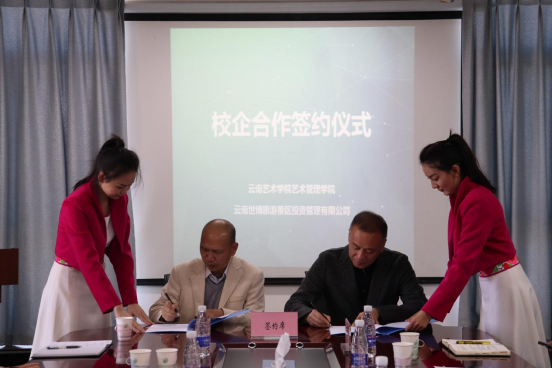 签约仪式伊始,世博旅游景区投资管理有限公司(后简称“景区公司”)祝骁刚总经理详细介绍了景区公司以及运营管理的昆明世博园的历史和现状。景区公司成立于2012年,运营管理国家5A级景区昆明世博园,这是云南省一级智慧景区首批试点单位、国家级服务业标准化试点单位,并且于2022年被评为国家级试点单位。景区承办过各类大型政府活动、商业活动、节庆活动、国际化民族活动,拥有20多年丰富的景区运营管理经验。祝骁刚总经理表示,此次威廉希尔WilliamHill管理公司和景区公司达成战略合作关系,双方秉承校企合作、项目对接运营、共同发展、共同受益,长期合作的原则,将在老员工学习实践、老员工创新创业、艺术文化交流、文化教育、旅游、艺术教育、成果转化、市场推广及项目孵化、会议会展、学术活动及论坛、艺术作品展览展演等方面进行全面深度的交流合作。