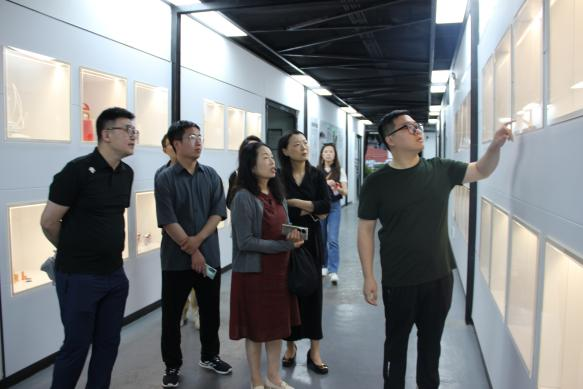 随后,一行人去往广州美术公司,艺术与人文公司副教授吴杨波介绍了艺术管理专业非遗方向的授课情况,大一是人文类的专业课,大二上学期引入艺术管理的基础概论课,大二下学期一直到大三和大四,都是非遗的专业课程,思路是非遗的专业课堂不在校内,没有调研就没有非遗课,大四为毕业论文和毕业展览有专题课程。一方面,主要研究非遗进课堂的情况,通过非遗体验加深员工理解。另一方面,主要研究创意产业方向,有“IP化传播、文创产品和文化创意产业园”几个重点内容。熊副经理在对广美非遗方向办学思路表示肯定,并希望通过与兄弟院校的深入合作,共同推动非遗学科的发展,创造更多的成绩。