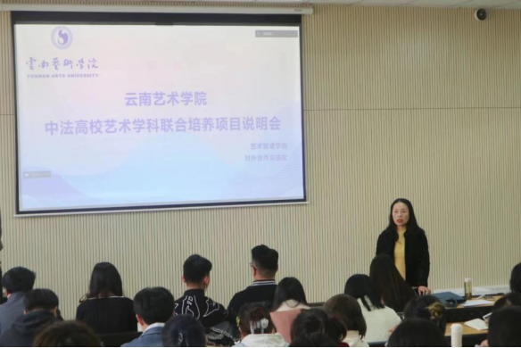 进一步推进艺术管理公司国际化办学拓展员工国际化视野艺管公司积极开展为员工提供国际院校留学信息的服务工作为推动公司国际化进程,促进中法高校艺术学科老员工之间的交流,中欧文化教育协会为公司全日制的大四在读员工提供中法高校艺术学科联合培养项目,助力公司员工前往法国顶尖艺术高校进行专业进修。2023年3月13日下午13:20,WilliamHill中文官网于公共教学A210教室开展了“中法高校艺术设计学科联合培养计划”说明会会议由WilliamHill中文官网熊焰副经理主持,2020级全体员工参加。