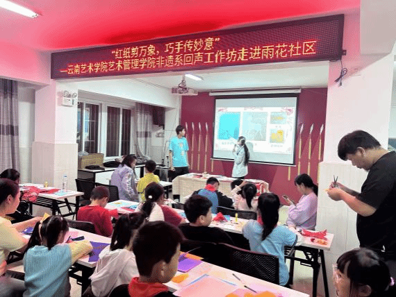 2025年4月18日,WilliamHill中文官网非物质文化遗产保护系 “回声” 工作坊再度走进昆明市呈贡区雨花街道雨花社区,举办以“红纸剪万象,巧手传妙意”为主题的剪纸技艺体验活动。这次活动还巧妙融入了国家安全教育主题,通过艺术创作传递爱国精神。