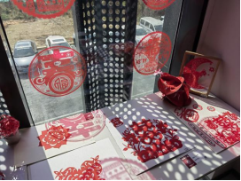 展览突破传统“白盒子”展陈方式,以数十米朱红色垂缦装点社区公共空间,将其巧妙营造成一个独具韵味的剪纸展览空间。180余幅精心创作的剪纸作品陈列其中,从经典的传统吉祥纹样到富有现代创意的设计,生动展现了非遗剪纸的独特魅力与灵动之美。开幕当天,特别邀请到呈贡剪纸省级非遗传承人高庆老师担任讲解嘉宾。高老师不仅深入浅出地讲述了剪纸艺术的历史渊源与地域特色,还现场演示了多种精湛的剪纸技法,引得在场居民连连赞叹,气氛热烈非凡。