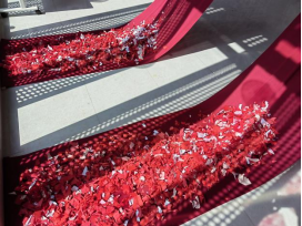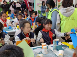 同时,此次展览着重环保理念的深化与拓展。员工们将创作过程中收集的红纸碎料进行再创作,将其压嵌于垂幔底部,通过艺术化重组,让这些零碎的边角料转化为象征文化传承“生生不息”的独特装置作品。展览开幕当天的工作坊吸引了60余名社区居民和小员工参与。非遗保护专业的员工们带领小朋友们以“废纸”为媒介开展手工创作,激发孩子们发挥想象力,将废弃物转变为珍贵的艺术品。这场以纸为媒介的工作坊,不仅让青少年体验到传统技艺的创造乐趣,更在实践中引导他们深刻理解循环利用的重要意义。