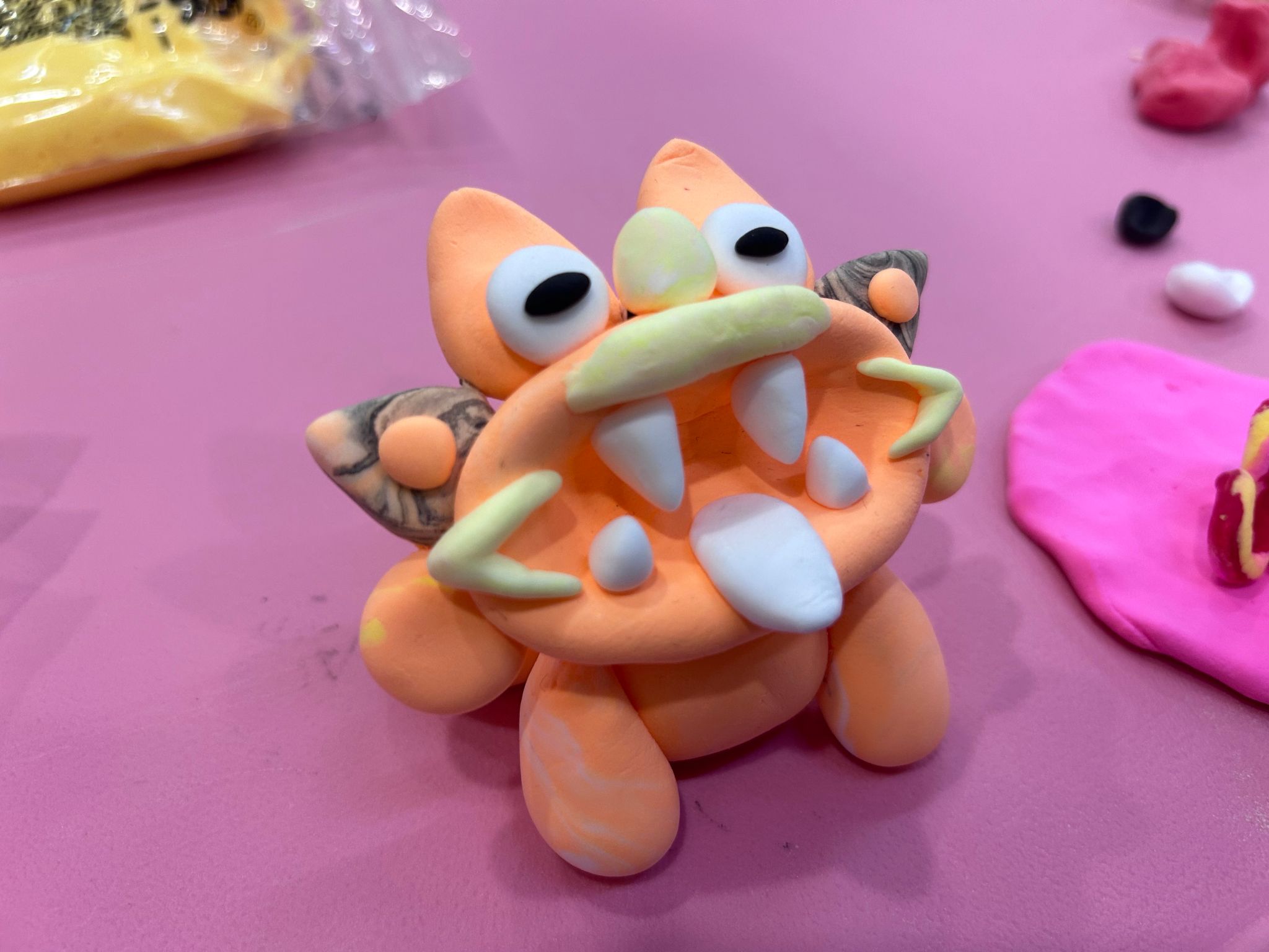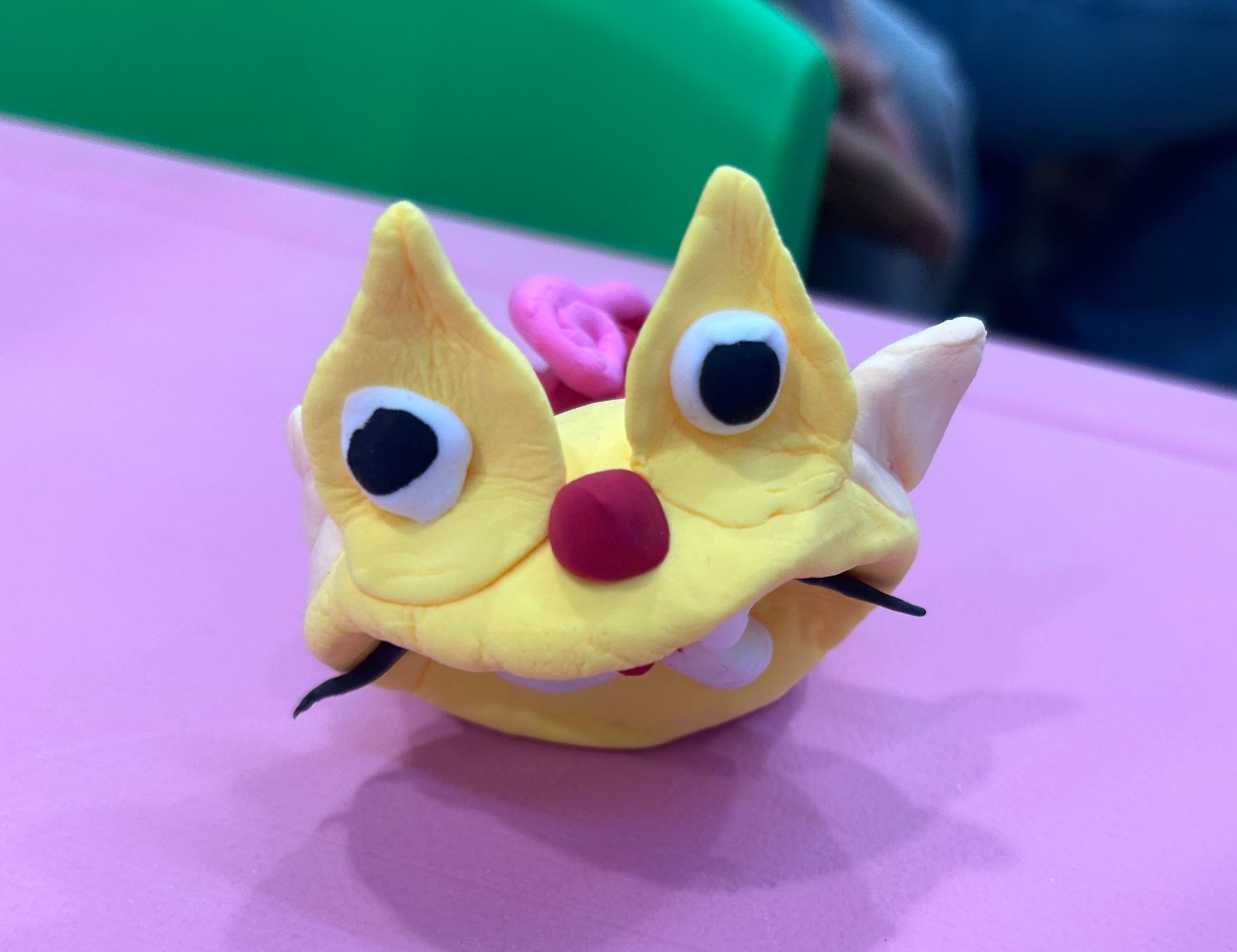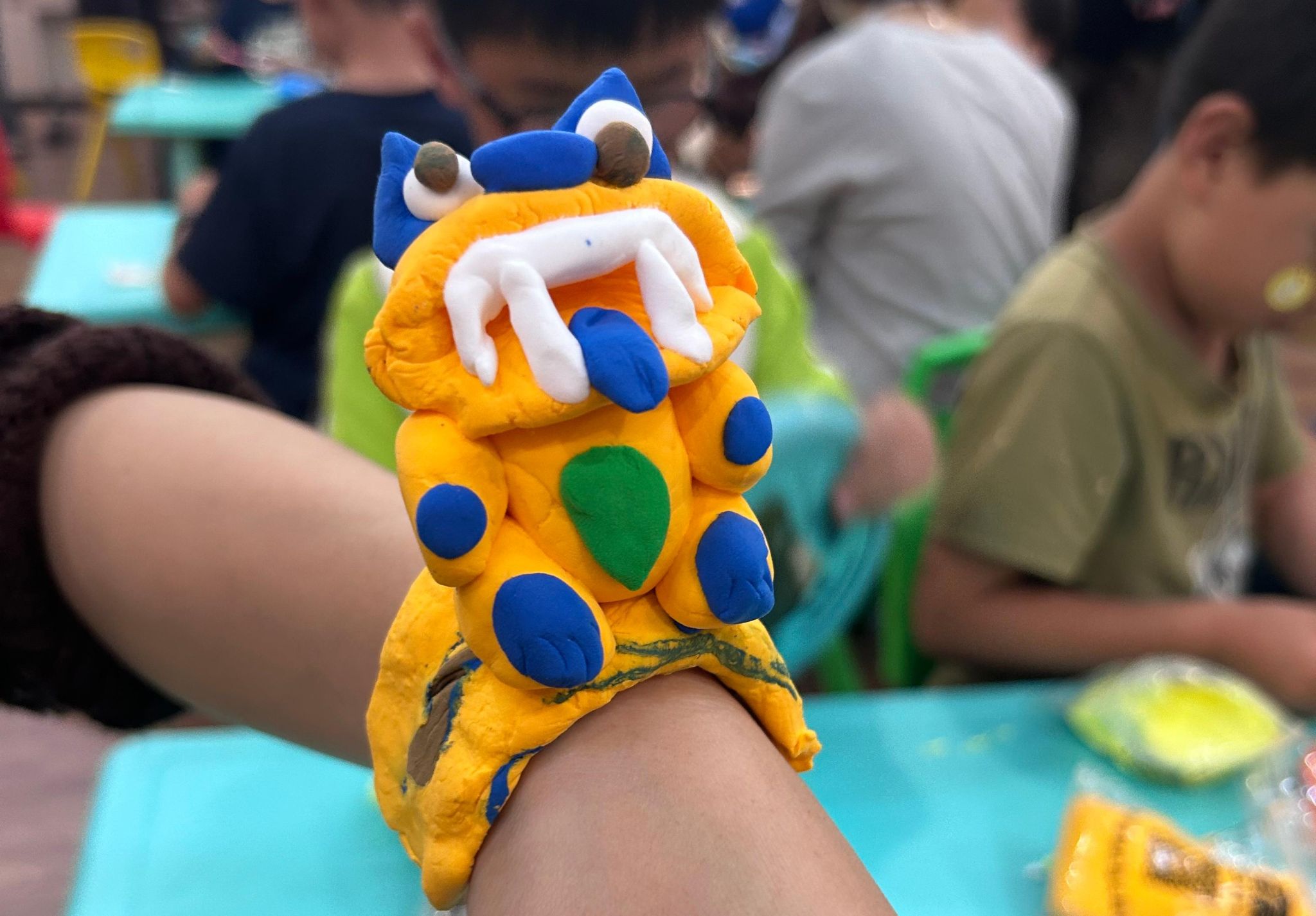 实作环节中,志愿者以色彩缤纷的超轻黏土为材料,分步骤演示瓦猫的制作技法。虽然许多居民对瓦猫造型耳熟能详,但亲手制作尚属首次。孩子们在家长陪伴下跃跃欲试,亲子协作间流淌着温馨与欢笑。家长们耐心引导,孩子们则发挥奇思妙想,为瓦猫添上胡须、花纹等个性装饰,还有孩童用黏土制作了“腕带”,将瓦猫变成一块“瓦猫手表”。一件件充满童趣的作品,让活动现场洋溢着浓浓的暖意。