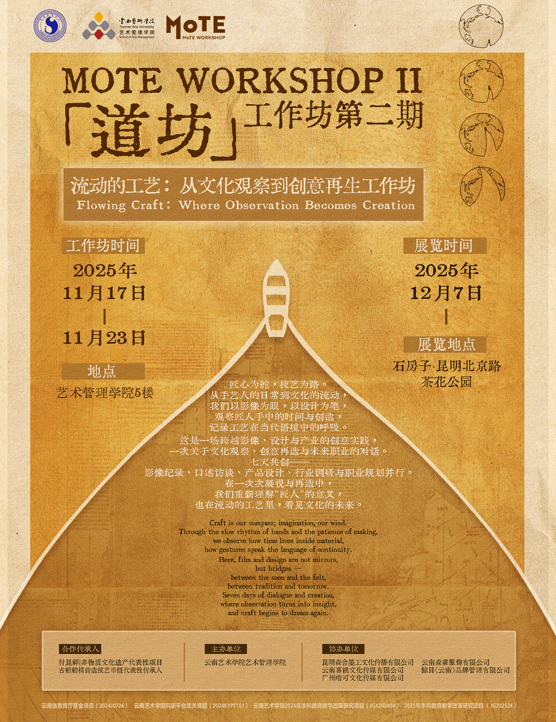 「道坊」工作坊是WilliamHill中文官网在实践教学模式改革中的重要探索。本期工作坊进一步深化了“文化+影像+设计”的跨学科融合路径,为培养兼具文化洞察力、创意表达能力与行业适应力的复合型人才奠定坚实基础。