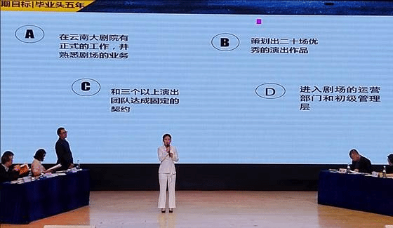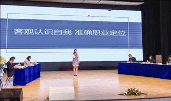 本次决赛分为主题演讲、vcr视频展示、评委提问三个环节。职业生涯规划陈述演讲中选手结合PPT演示文稿,从自我认知、目标职业、执行计划三个方面进行了三分钟的演讲,演讲结束后,评委对选手的阐述进行现场提问,并根据其综合表现进行现场打分。